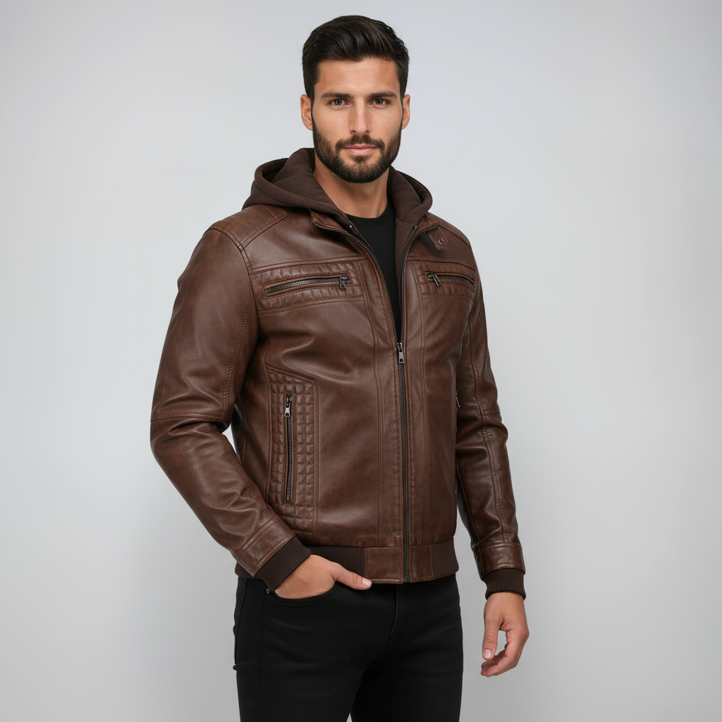 Billy Heren Leren Jas met Capuchon