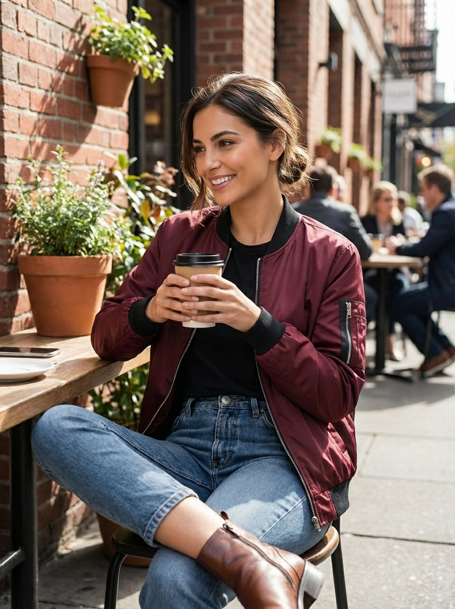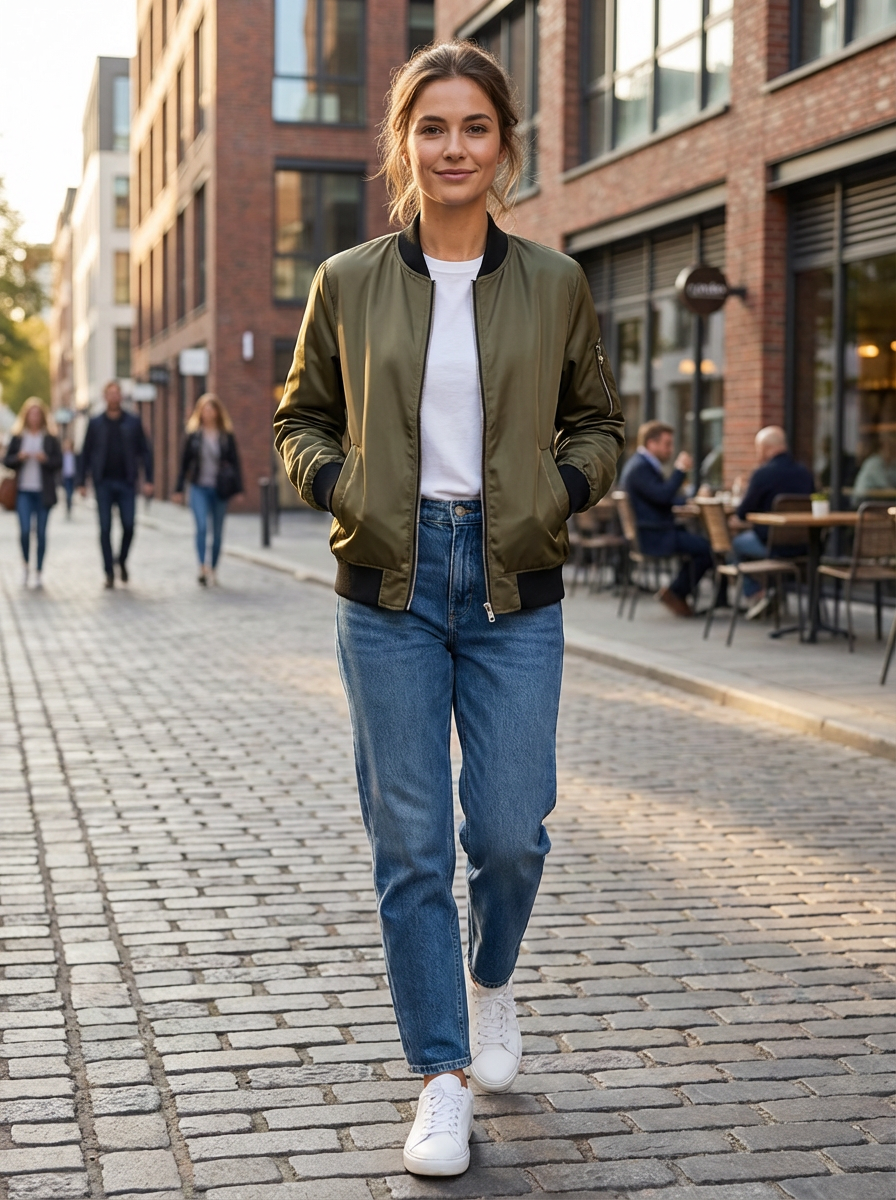 Dit korte bomberjack voor dames heeft een strak silhouet met een ritssluiting aan de voorkant en een casual pasvorm. Het is ontworpen om gemakkelijk te combineren en past goed bij jeans, joggingbroeken of jurken voor een relaxte outfit. Geschikt voor dagelijks gebruik, boodschappen in de stad of informele ontmoetingen.