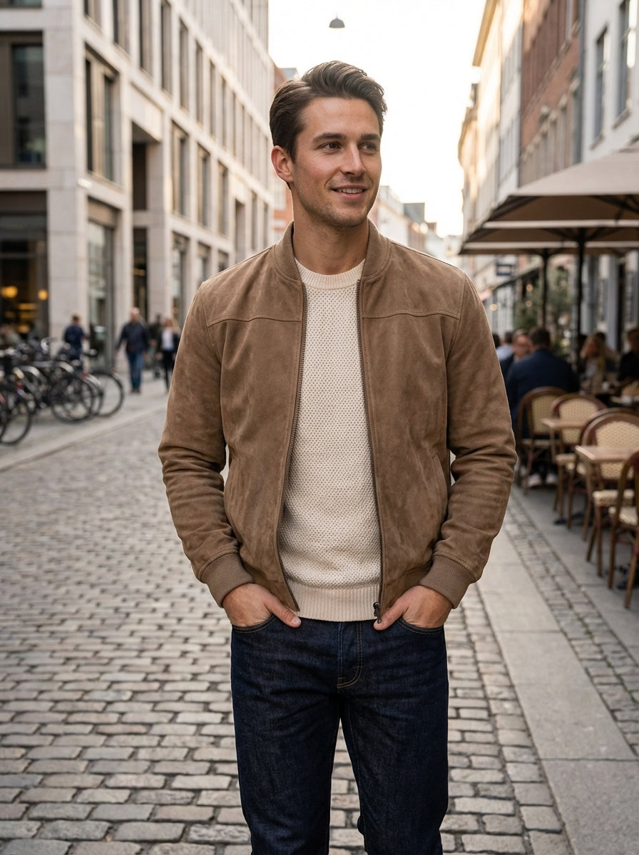 Dit moderne Bomberjack voor heren heeft een strak silhouet in bomberstijl met een duidelijke, gestructureerde contour. Het is ontworpen om laagjes te dragen tijdens wisselende seizoenen en ziet er zowel casual als meer gekleed netjes uit. Geschikt voor dagelijks gebruik, sociale gelegenheden of smart-casual gelegenheden waar een verzorgde look de voorkeur heeft.
