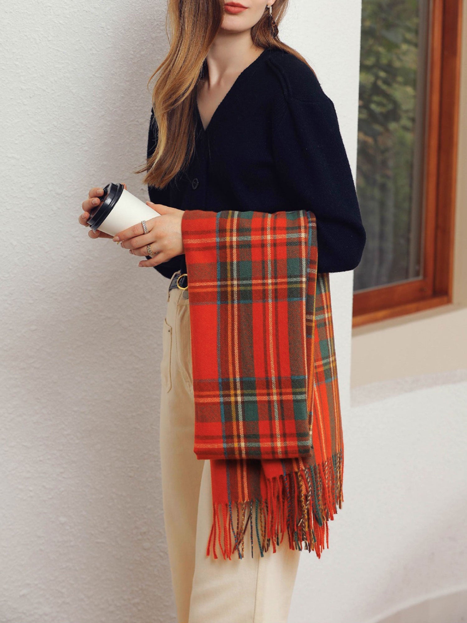 De Elora sjaal is een echte klassieker voor de koude seizoenen. Het stijlvolle ruitpatroon geeft een tijdloze uitstraling, terwijl de zachte stof heerlijk comfortabel aanvoelt. Dankzij de franjes krijgt de sjaal een speels accent, perfect om je outfit compleet te maken.