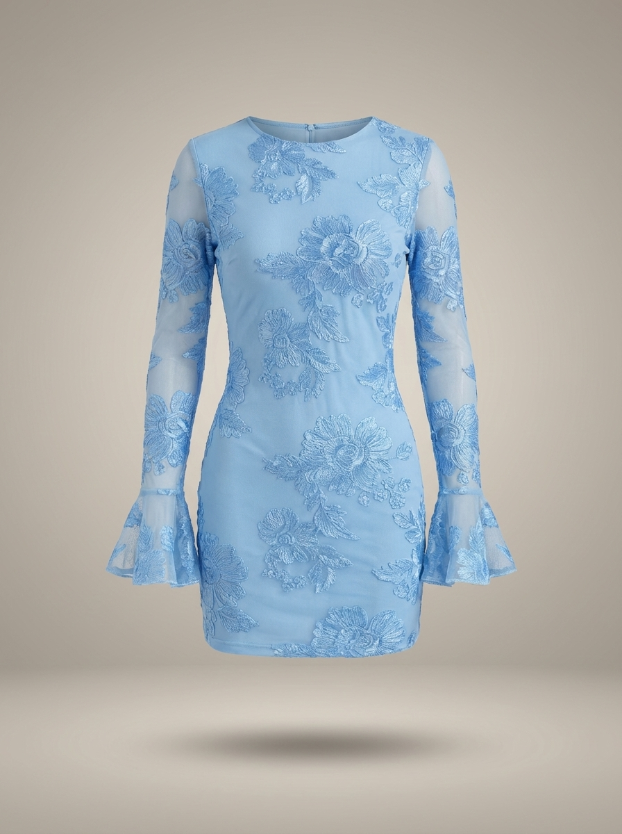 Deze minijurk voor dames heeft een gedetailleerd bloemenpatroon in combinatie met een strak silhouet, wat zorgt voor een opvallende look. De ronde halslijn en lange mouwen zorgen voor een evenwichtig ontwerp dat zowel overdag als ’s avonds gedragen kan worden. Combineer de jurk met sandalen, platte schoenen of hakken voor sociale evenementen, bijeenkomsten of stijlvolle uitjes.
