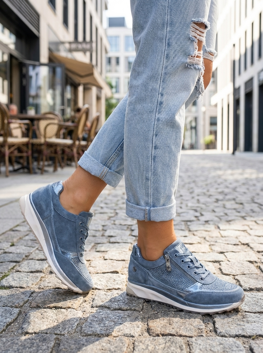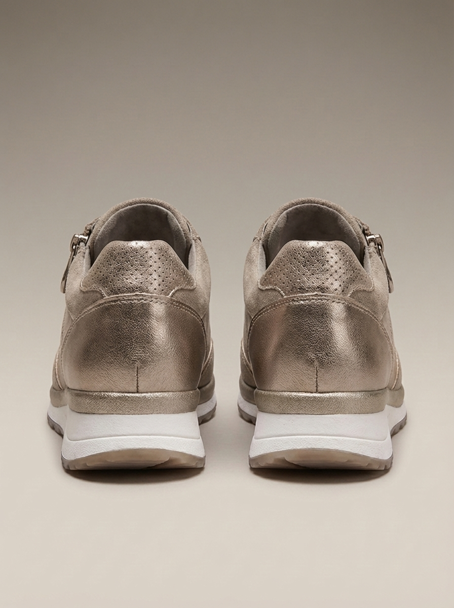 Deze damessneakers hebben een vetersluiting aan de voorkant en een ritssluiting aan de zijkant, wat zorgt voor een uitgebalanceerde combinatie van functionaliteit en alledaagse stijl. De gestructureerde vorm zorgt voor een strakke, sportieve look die perfect past bij dagelijkse bezigheden en informele uitstapjes. Combineer ze met een spijkerbroek, legging of casual jurk voor een praktische en goed op elkaar afgestemde outfit.