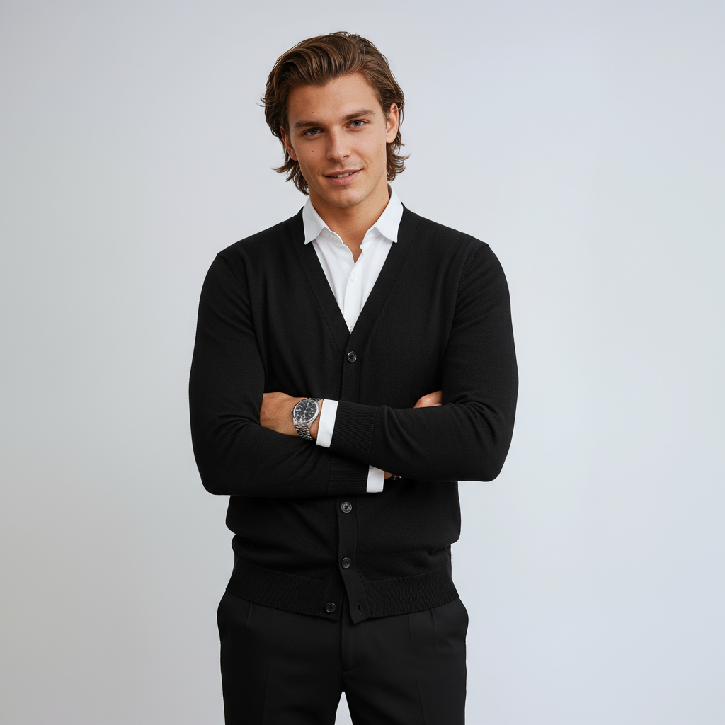 Het Tinho heren vest combineert klassiek design met moderne veelzijdigheid. Met zijn elegante V-hals en knoopsluiting is dit vest eenvoudig te dragen over een overhemd of T-shirt. Het slanke model en de fijne afwerking maken het een stijlvolle keuze voor zowel casual als nette gelegenheden.