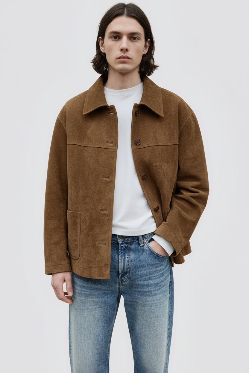 Upgrade je garderobe met dit tijdloze suède jack. Bestel nu en ervaar moeiteloze elegantie!