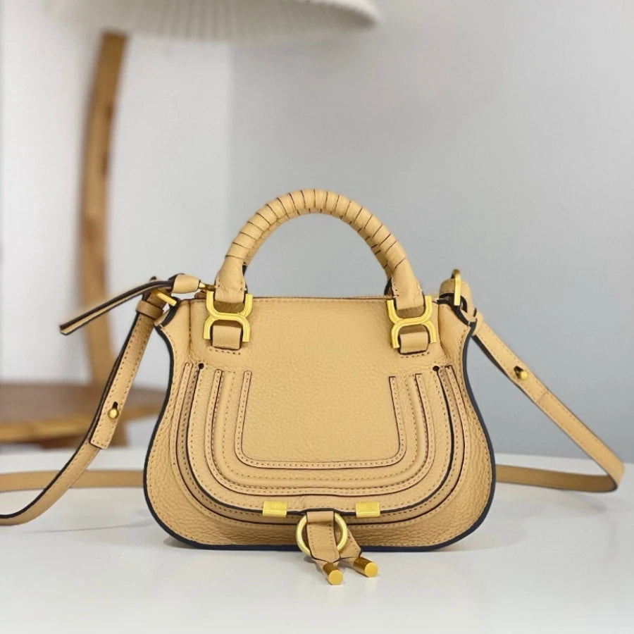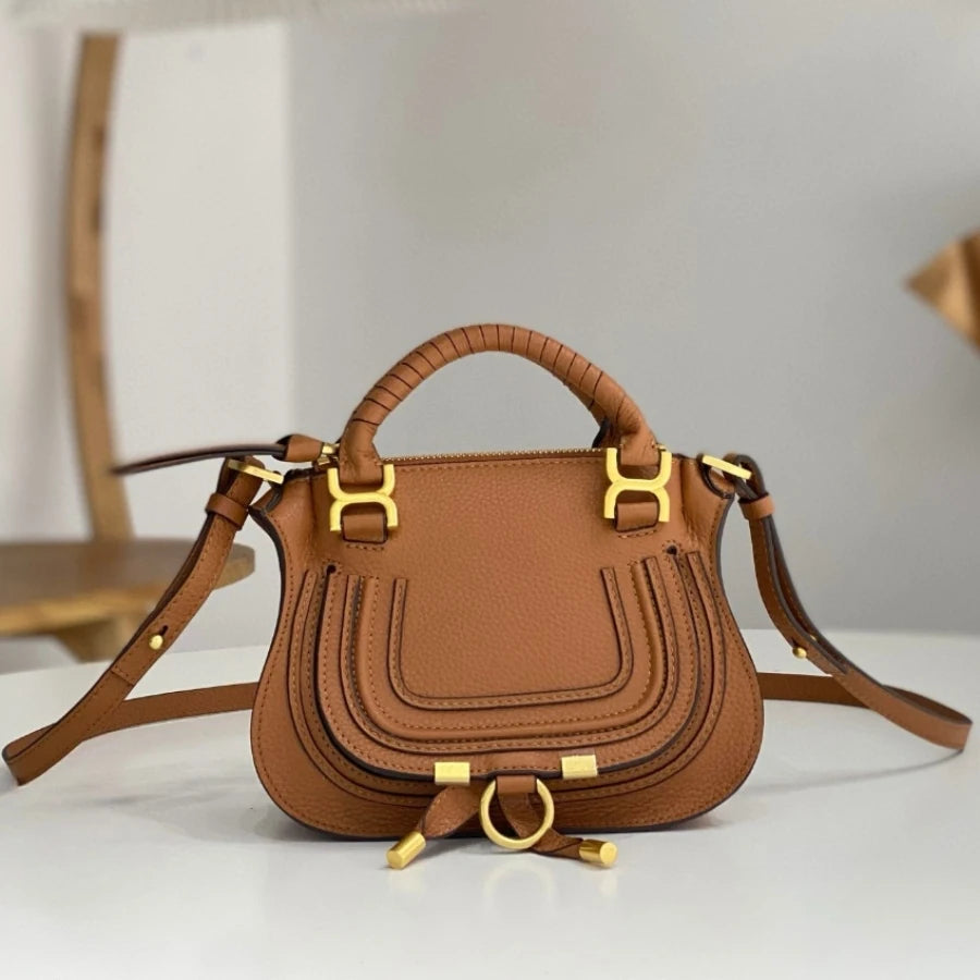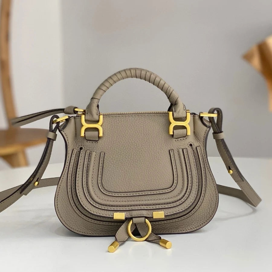 Deze handtas voor dames combineert een compact formaat met een stijlvol design. Het gebogen patroon en de gouden details zorgen voor een luxe uitstraling, terwijl de tas praktisch genoeg is voor dagelijks gebruik.